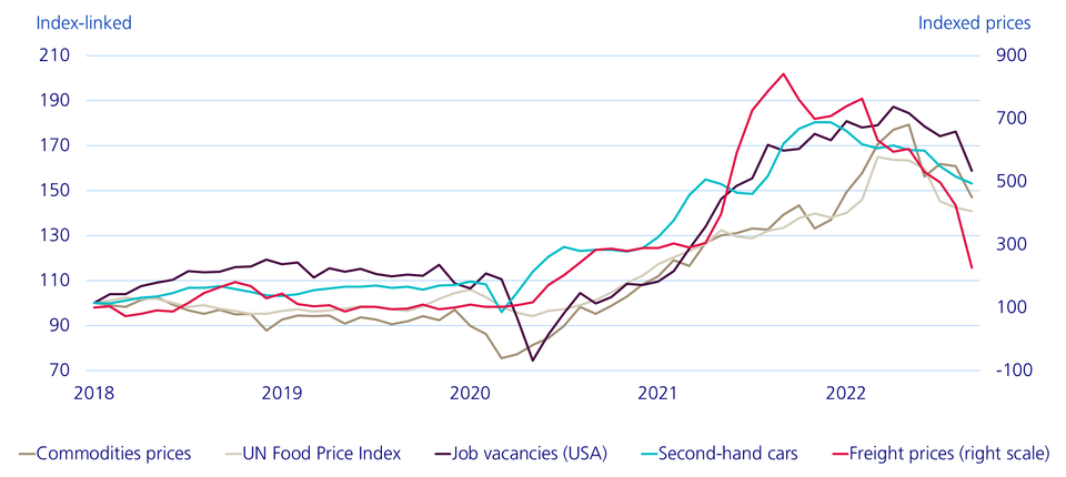 The current trend of inflation supports this cautious optimism. In the USA, the inflation peak has already passed. Price-driving goods such as commodities, food prices, prices for second-hand cars and, in particular, freight prices have all fallen. Even rental prices for US properties have been falling since last October.