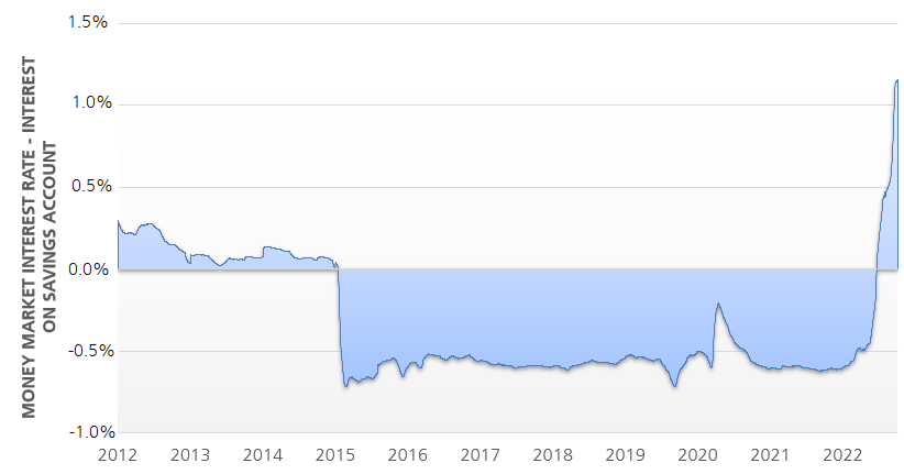 With the turnaround in interest rates, the SNB has raised hopes among some investors that they will finally receive interest again when parking money in (savings) accounts. However, reality paints a different picture. Interest on amounts held in accounts remains unchanged at commercial banks in Switzerland at 0%. Depending on the bank, there may be a slightly higher interest rate on savings deposits. Moreover, real interest rates remain significantly negative due to the current high rate of inflation. Nonetheless, there are interesting alternatives for investors. Money market investments currently offer a historically high surplus return compared to the traditional account solution.