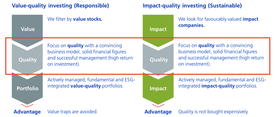 The first step is to explain how we define quality in the context of our investment approach. In a second step, quality needs to be specified on the basis of qualitative and quantitative parameters and criteria.